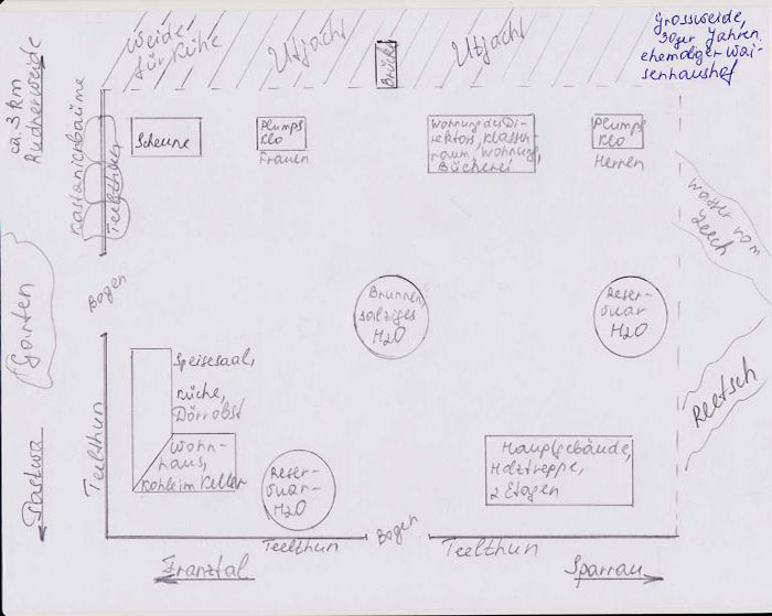 Skizze von Waisenhaushof in Grossweide. Gezeichnet von Jakob Klassen aus Rudnerweide.